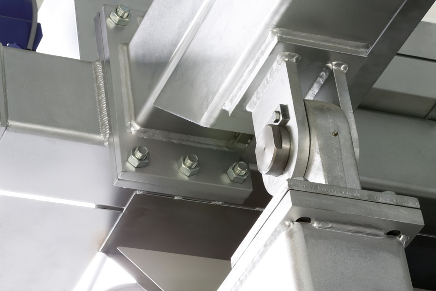 Bei dem großen Brenner sind Gelenklagerköpfe an den Hydraulikzylindern installiert, aber zusätzlich auch fest verbaut. Zum einen muss der Arm sicher geführt werden, wofür zwei Lager im Einsatz sind, die leichte Fluchtungsfehler ausgleichen. Gleichzeitig müssen sie aber auch eigentlich die ganze Last aufnehmen. Zum anderen gibt es Gelenkköpfe an den Hydraulikzylindern, um beispielsweise keine Querkräfte auf die Kolbenstangen oder die Dichtungen wirken zu lassen. Dadurch würde die Konstruktion einerseits schwergängiger und auf Dauer würde es zu einem erhöhten Verschleiß am Zylinder und an den Lagerungen kommen.